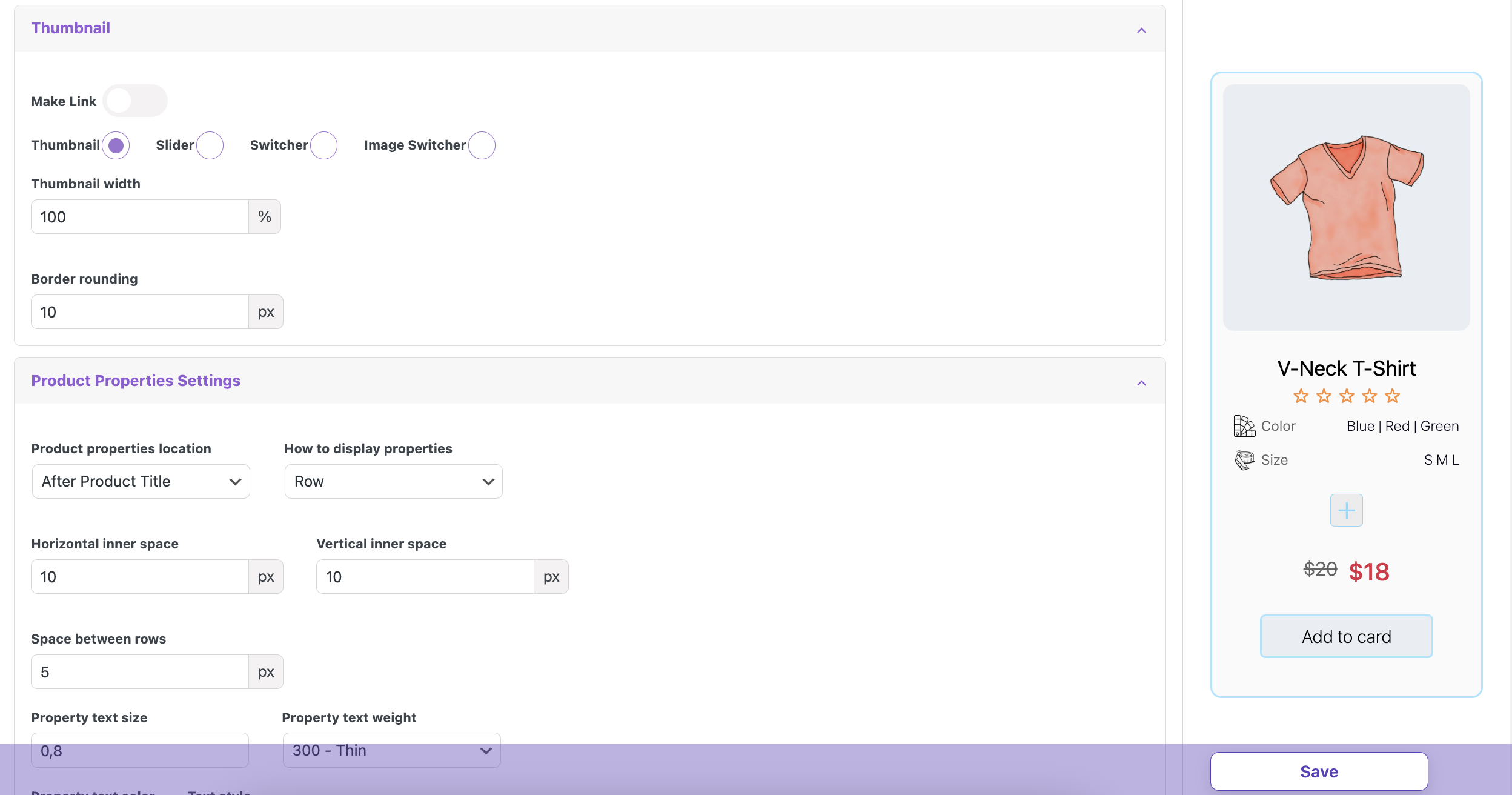 Wrapper width – sets the width of the product card